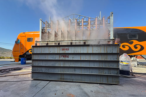 Стенд гидроторможения локомотивов используется для проведения нагрузочных испытаний дизель-генераторной установки с водяным сопротивлением. Испытания позволяют отрегулировать такие электромеханические параметры, как генерируемая мощность, частота вращения коленвала дизеля, температура выхлопных газов, чтобы привести агрегат в соответствие с техническими нормативами. Стенд соответствует стандартам капитального и деповского ремонта тепловозов серий DF и ND. Обеспечивает функции запуска локомотива, нагрузки и контроля частоты вращения дизеля. Это крупное путевое оборудование, которое имитирует тяговый режим для неподвижного локомотива, позволяя выполнить регулировку и настройку после завершения сборки или ремонта, чтобы добиться номинальной мощности и характеристик, соответствующих техническим требованиям.