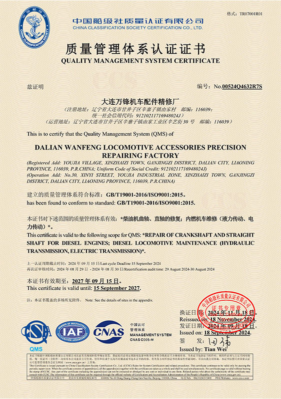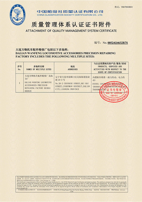 Компания Далянь Ваньфэн, основанная в 1986 году, расположена в городе Далянь провинции Ляонин, Китай. Более 30 лет работы на рынке позволили нам сформировать два ключевых направления деятельности: «Восстановление и ремоторизация механических компонентов» и «Капремонт, текущее обслуживание железнодорожных локомотивов, восстановление, ремонт и производство новых запасных частей и оборудования». Благодаря глобальному подходу и стратегической работе на международной арене, мы предоставили профессиональные услуги клиентам из России, США, Мексики, Франции, Греции, Южной Кореи, Японии и многих других стран.